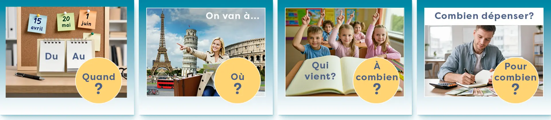 Laissez-nous, moi et mon équipe d'experts, gérer ce stress ! Grâce à notre expérience , nous connaissons les ficelles du métier et sommes passés maîtres dans l'art de la planification d'un voyage scolaire sans souci.